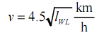 v [kt] ist die Rumpfgeschwindigkeit in Knoten, d.h. in Nautischen Meilen pro Stunde.